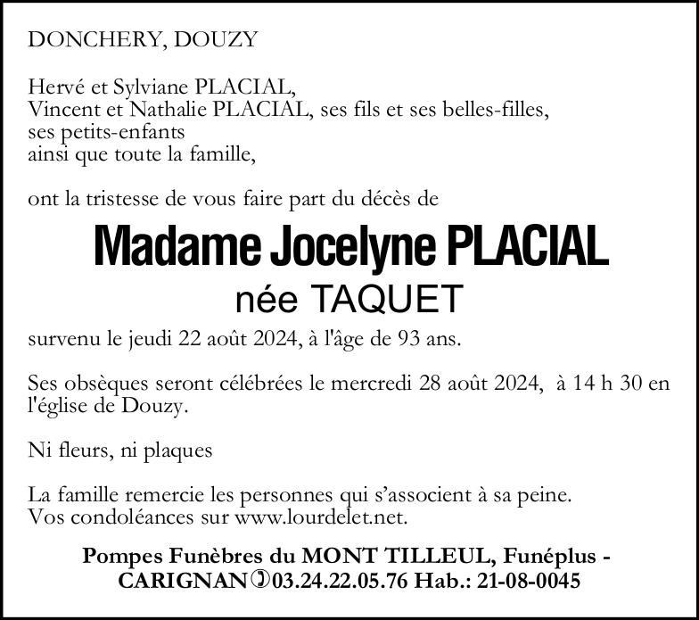 Madame Jocelyne PLACIAL née TAQUET