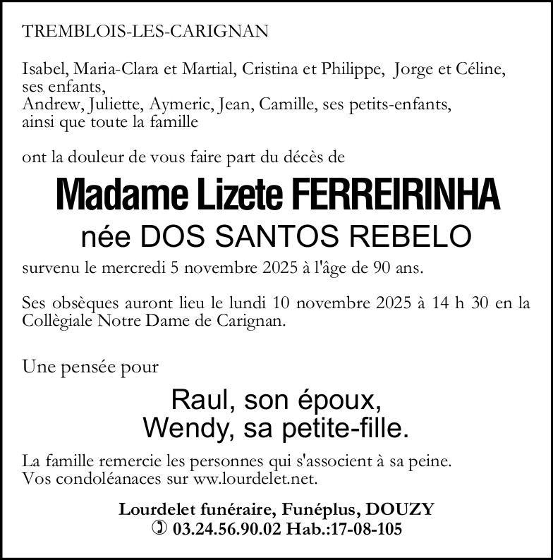Madame Lizete FERREIRINHA née DOS SANTOS REBELO