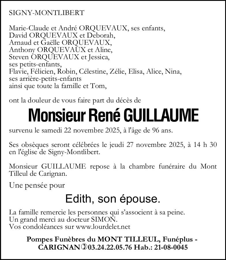 Décédé à Signy-Montlibert (08370, France) le samedi 22 novembre 2025 à l'âge de 96 ans