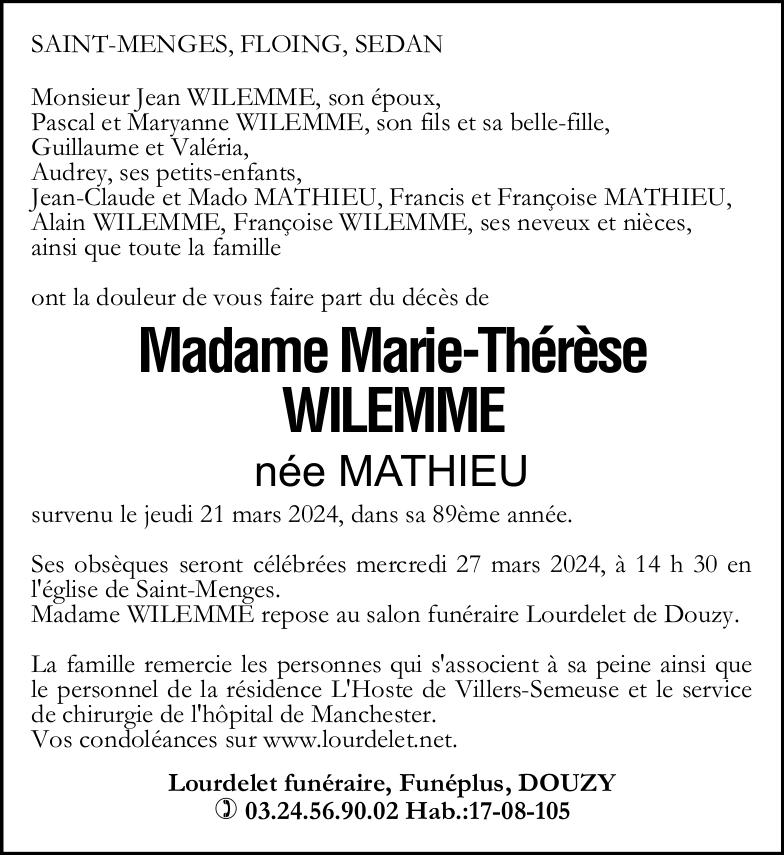 Madame Marie-Thérèse WILEMME née MATHIEU