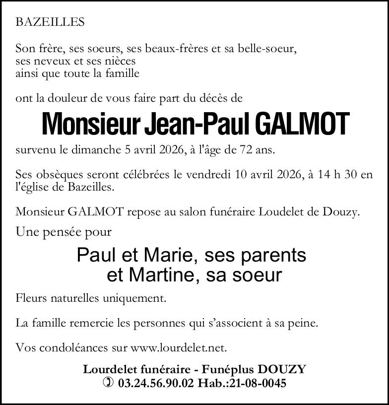 le dimanche 5 avril 2026 à l'âge de 72 ans
