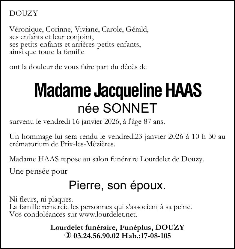 le vendredi 16 janvier 2026 à l'âge de 87 ans
