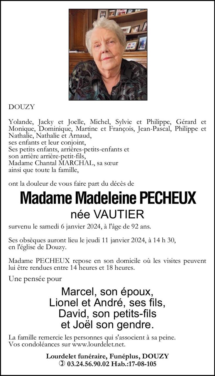 Madame Madeleine PECHEUX née VAUTIER