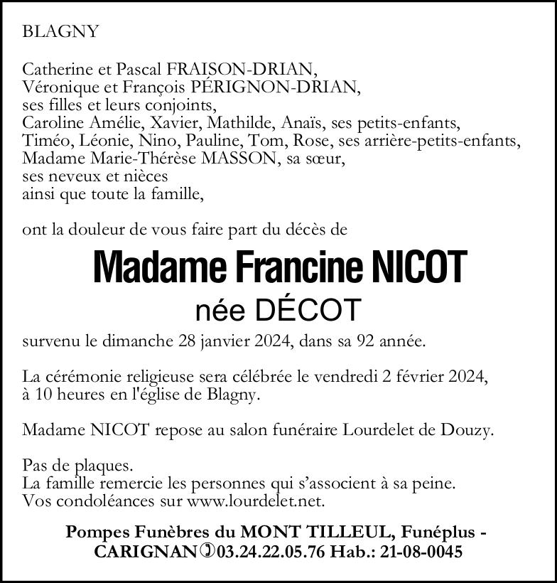 Madame Francine NICOT née DÉCOT