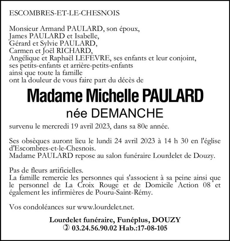 Décédée à Sedan (08200, France) le mercredi 19 avril 2023 à l'âge de 79 ans
