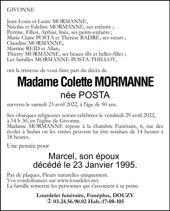 Décédée à Sedan (08200, France) le samedi 23 avril 2022 à l'âge de 90 ans