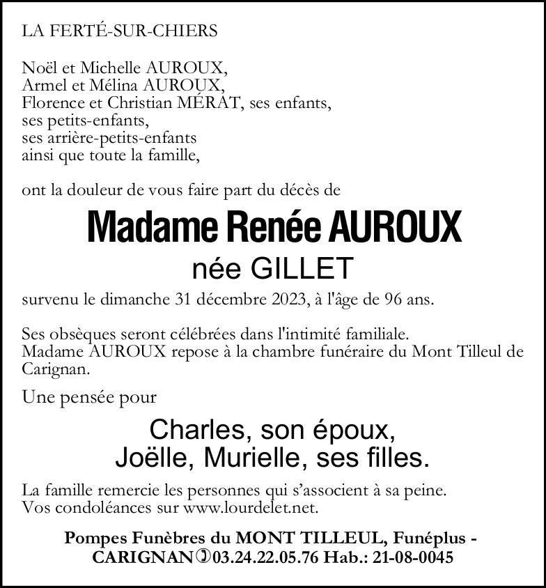 Madame Renée AUROUX née GILLET