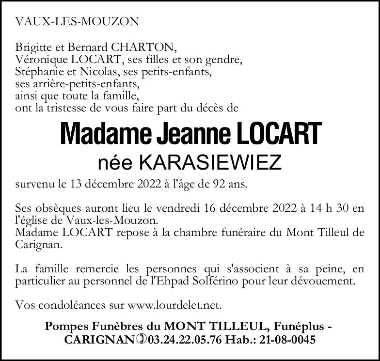 Madame Jeanne LOCART née KARASIEWIEZ
