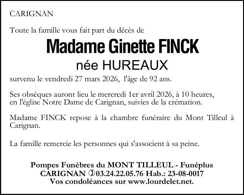 Madame Ginette FINCK née HUREAUX