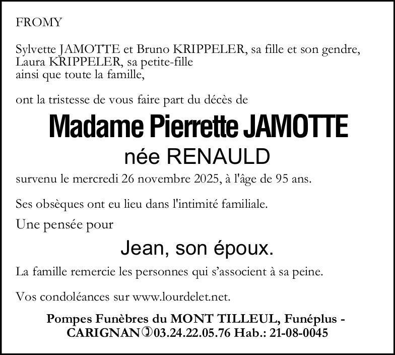 Décédée à Charleville-Mézières (08000, France) le mercredi 26 novembre 2025 à l'âge de 95 ans