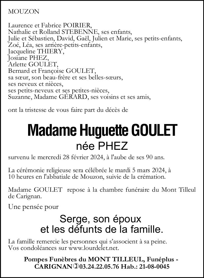Décédée à Mouzon (08210, France) le mercredi 28 février 2024 à l'âge de 89 ans